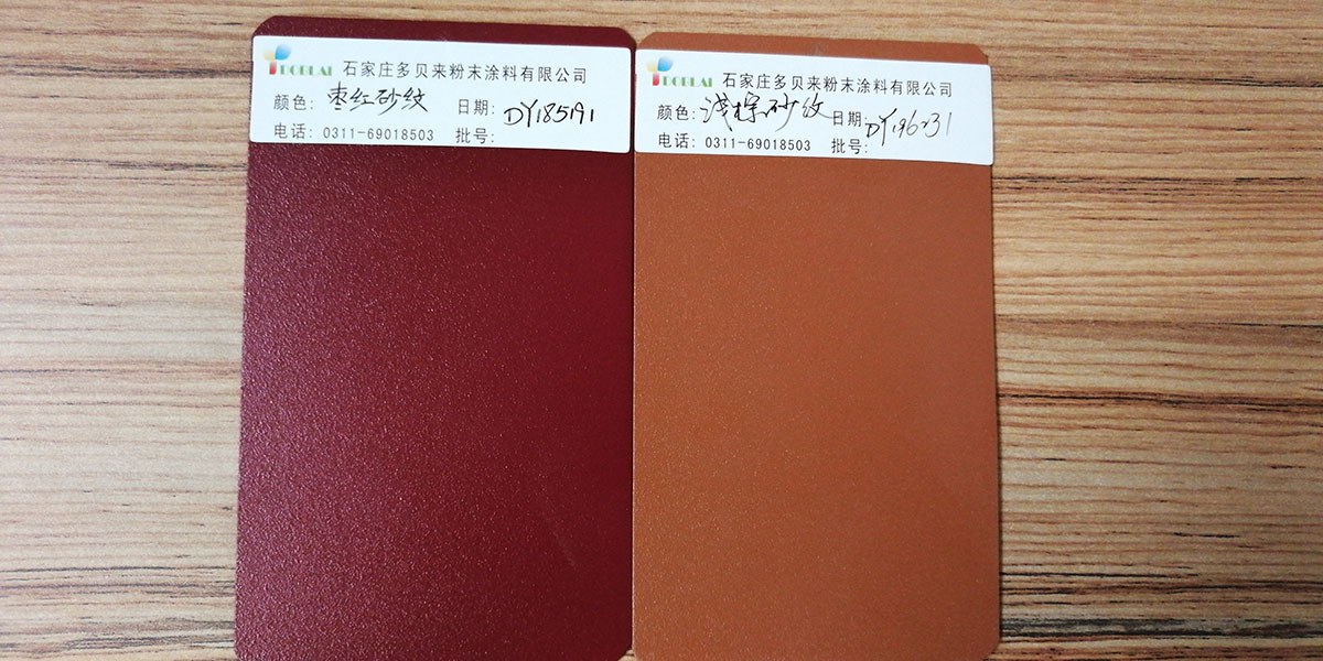 石家莊多貝來粉末涂料有限公司,水鉆頭粉末涂料樣板(棗紅、淺棕砂紋)。