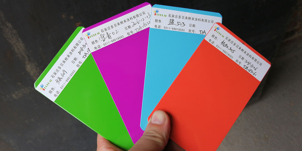 石家莊多貝來粉末涂料有限公司,機(jī)械配件專用粉末涂料樣板(綠、雪青、藍(lán)、桔紅)。